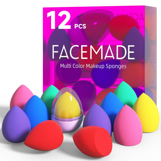 FACEMADE 12 PCS Makeup Sponge Set and 1 Sponge Holder, Makeup Sponges for Foundation