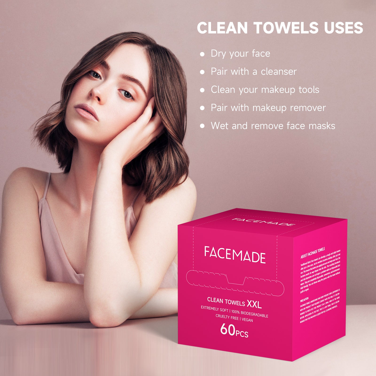 FACEMADE 60 ct Face Towels XXL,Disposable Face Towelettes